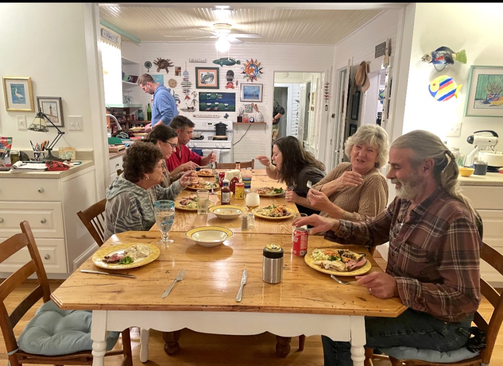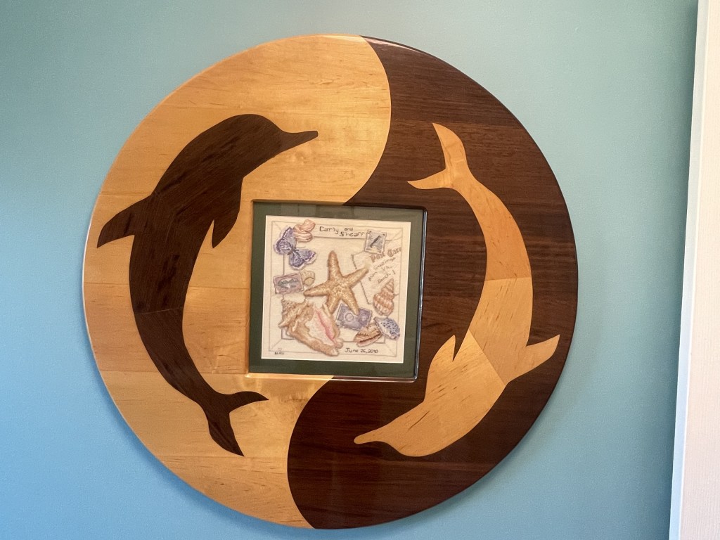 And the wood working. I loved him and Dad talking shop and types of wood and saws and processes I only half paid attention to, but listened to anyway if I was helping them unload some piles of wood or whatever they were up to. When I got married 14 years ago, Uncle Billy made the most beautiful in-laid wood art – a huge ying and yang of dolphins with light and dark wood – with a cross stitch from Kathy framed in the middle, and now I walk by it and touch the surface, knowing how much time and talent and love he put into it. How lucky I was to have a place in his heart.